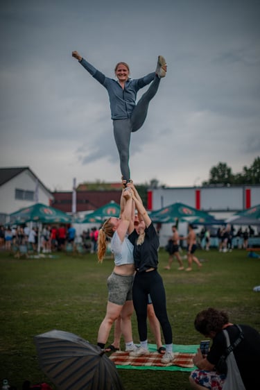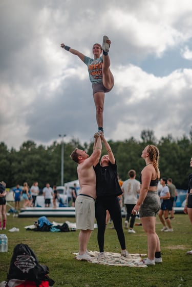 Bei uns steht Zusammenhalt an erster Stelle: Wir motivieren uns gegenseitig, probieren neue Stunts und haben Spaß am Training.  Werde Teil unserer Cheer-Community und lass uns gemeinsam Erfolge feiern!